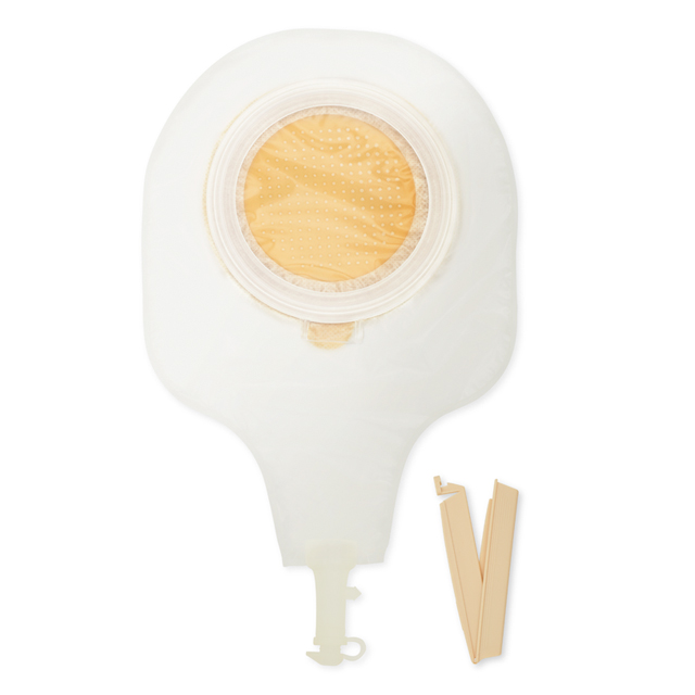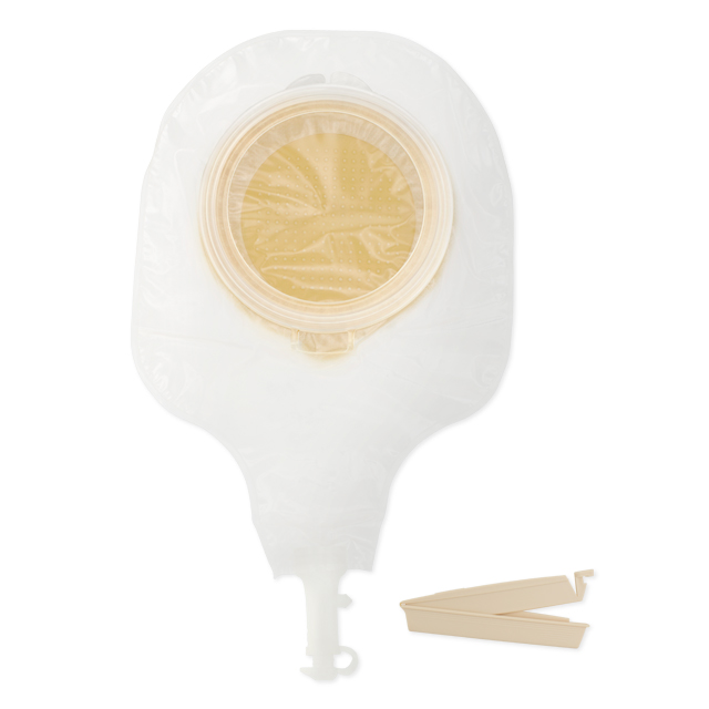 PostOp-Beutel, Basisplatte und Verschlussklammer.